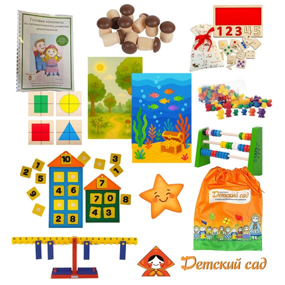 В комплект входит не менее 21 различных математических наборов для детей дошкольного возраста.