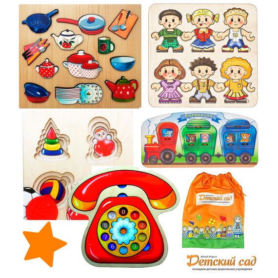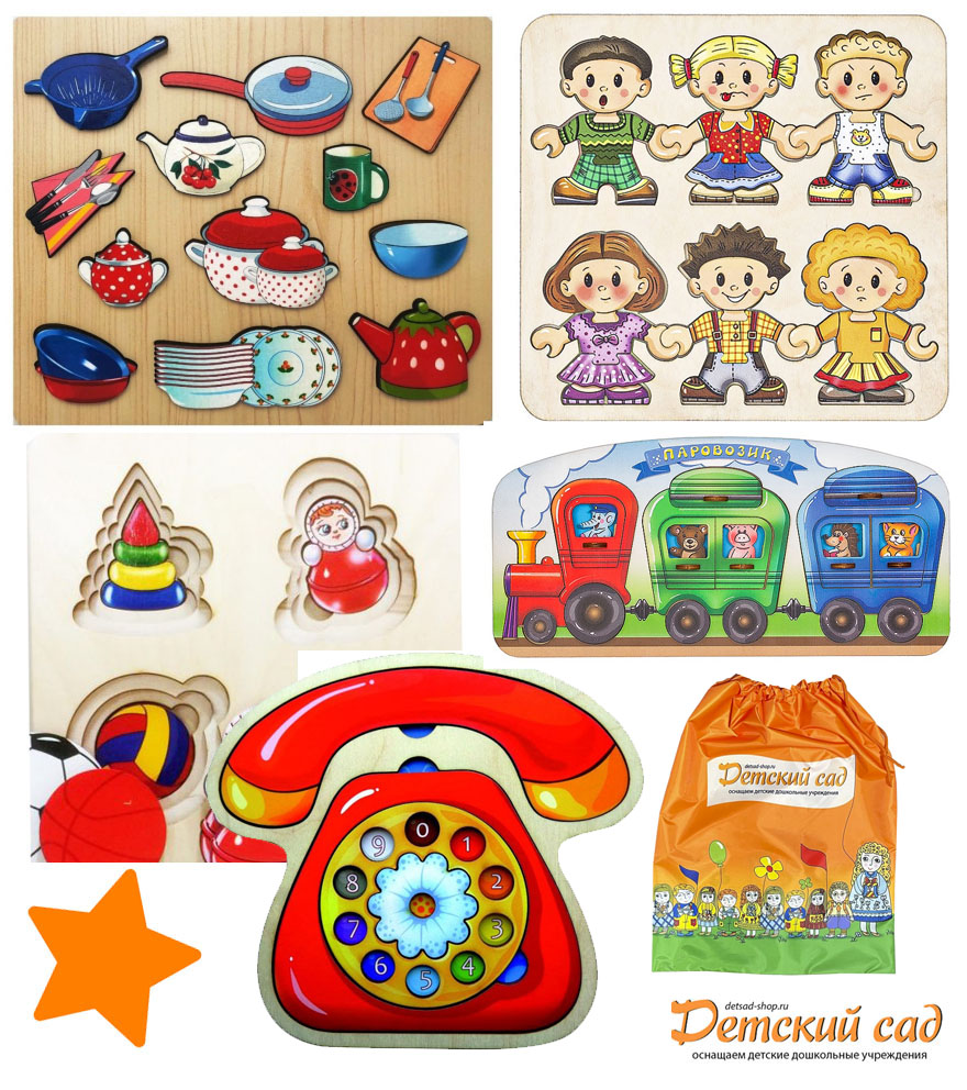 - Рамка-вкладыш ПОСУДА, Развивающая доска "Игрушки"(размер 24x24x1,5 см) больше-меньше.