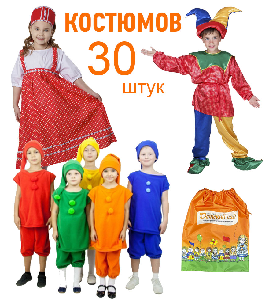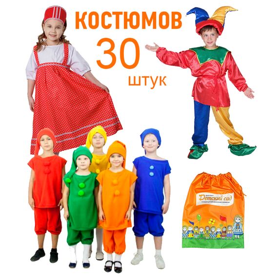 - Состав: Не менее 30 костюмов (сказочные персонажи, животные, профессии, национальные образы).