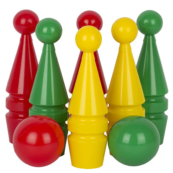 Размер набора d 8 h 23 d 7 Спортивная игра-соревнование. В наборе 6 разноцветных кегель и 2 шарика. Цель играющих - сбить шаром кегли, расставленные в определенном порядке. За каждую сбитую кеглю начисляются очки. Победившим считается тот, кто наберет наибольшее число очков.Игра развивает ловкость, координацию движений, глазомер. Игрушки российского производства, качественные и имеют все необходимые сертификаты.