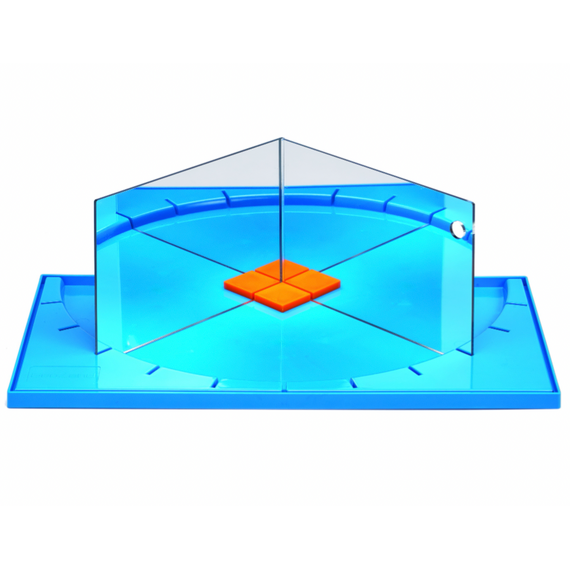 В составе: - 3 акриловых прямоугольных зеркала, - 1 полукруглое зеркало, - 1 пластиковая основа для установки зеркал под разным углом, - 30 разноцветных плиток разных геометрических форм (геометрическая мозаика), - 32 двусторонние карточки с заданиями. Набор упакован в картонную коробку.
