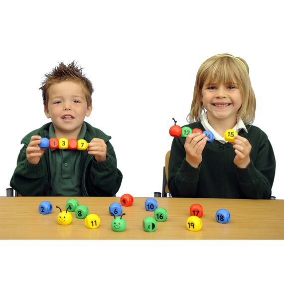 СОСТАВ: головы гусениц - 16 шт, сегменты тела гусеницы с цифрами от 1 до 20 - 80 шт.