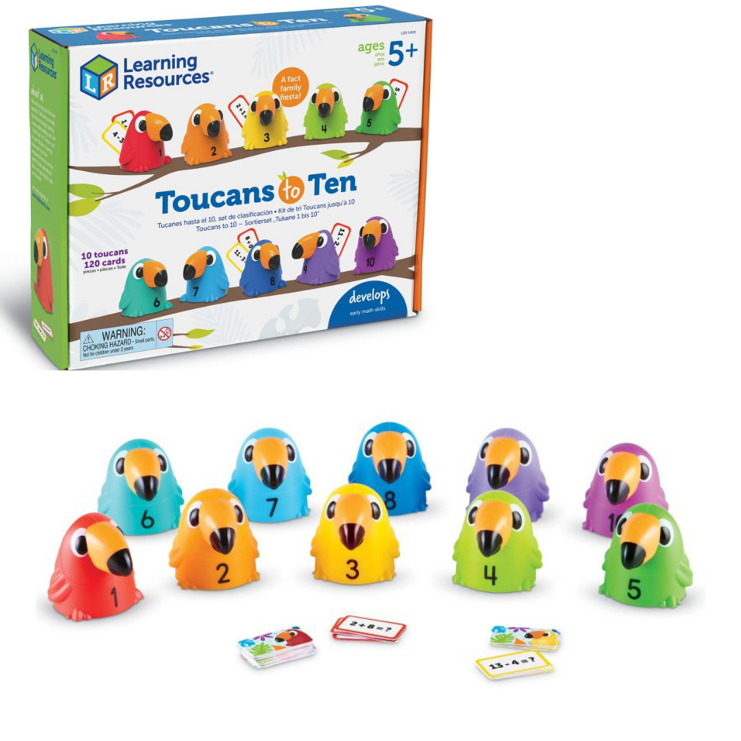 - В наборе 10 туканов с цифрами от 1 до 10 и 120 карточек