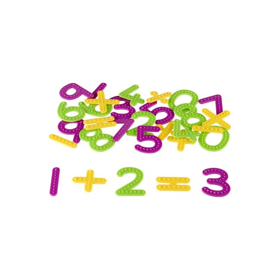 Структура тактильных элементов предполагает систему самоконтроля: малыш сразу почувствует разницу между гладким скольжением по поверхности в случае движения по стрелочкам и тормозящими шероховатостями при выборе неверного направления. В целях пробуждения интереса малыша к решению математических задач с самого раннего возраста набор включает также математические знаки