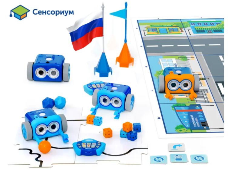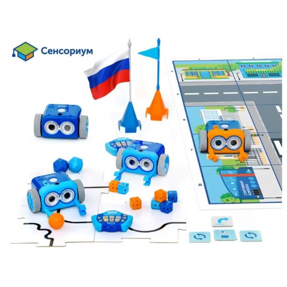 Состав комплекта: 4 программируемых робота Ботли версии 2.0., 10 тематических полей, комплект аксессуаров, методические рекомендации по организации занятий.