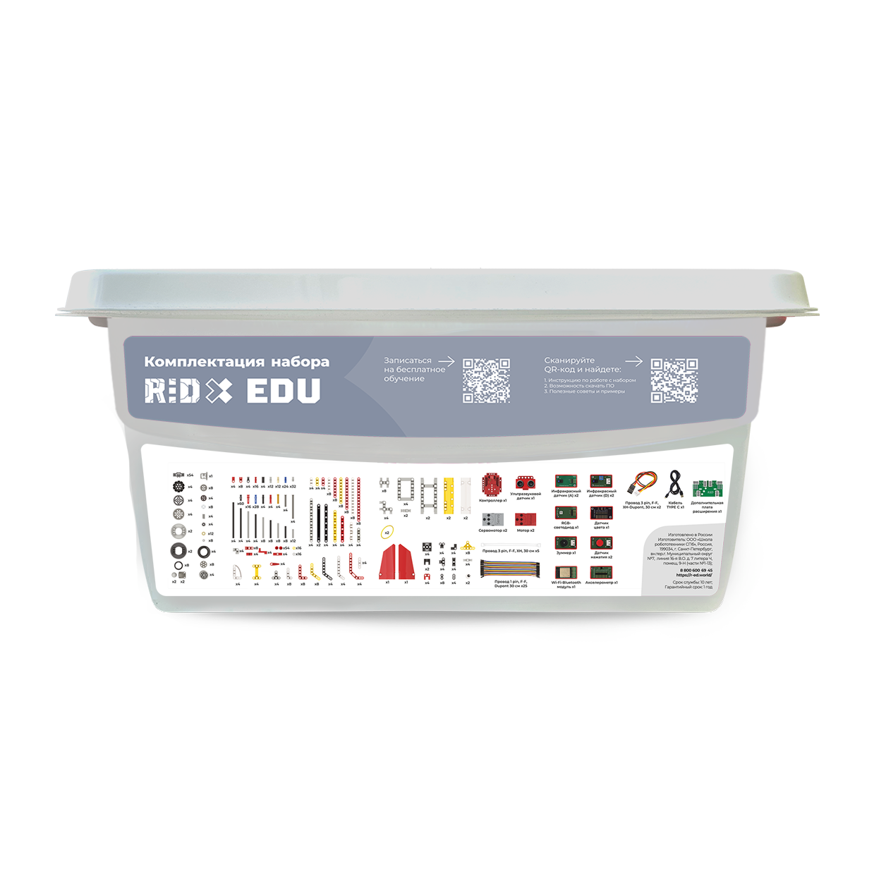 Комплекс образовательных инструментов для учащихся 1-6 класса, разработанный с учетом особенностей возраста, включающий робототехнический набор R:ED X и программное обеспечение R:ED CODE для прошивки контроллера, с возможностью программирования в 2-х средах программирования , а так же с дополнительными элементами для участия в фестивалях и соревнованиях.