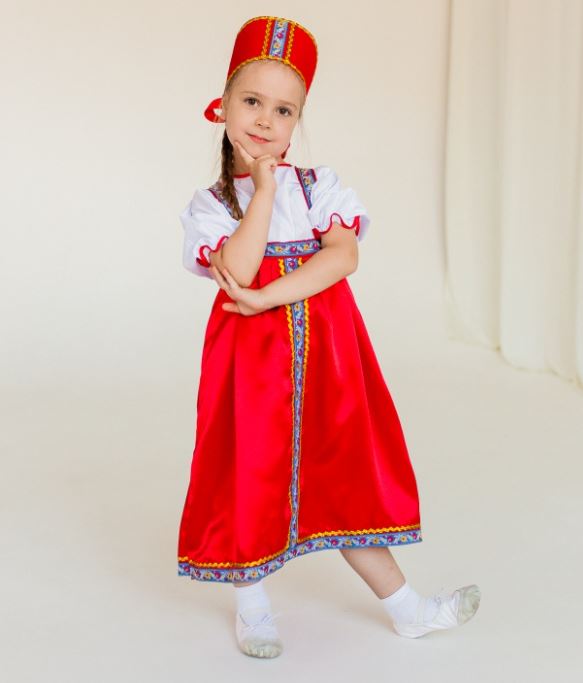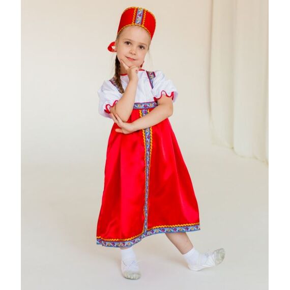 Русский народный костюм красный (девочка) (р-ры 134-146)
